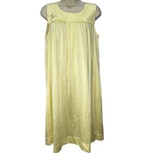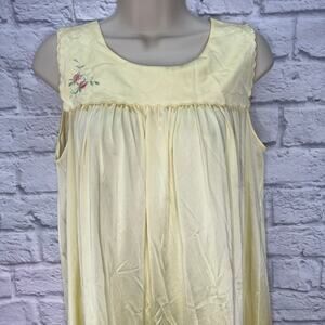 Vintage Shadowline Nylon Nightgown Yellow Sleeveless Size S Midi Floral Cottage