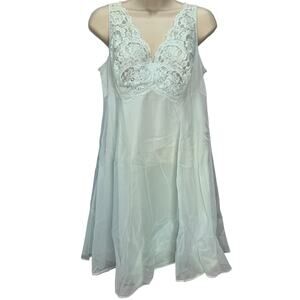 Vintage Shadowline Short Sheer Overlay Nightgown Baby Blue Size S Nylon Lace