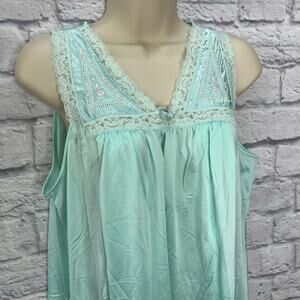Vintage Shadowline Teal Blue Sleeveless Nightgown Lace Detail Size M Nursing