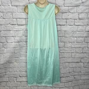 Vintage Shadowline Teal Blue Sleeveless Nightgown