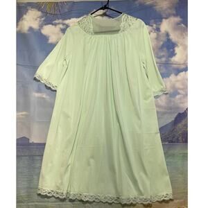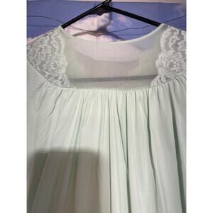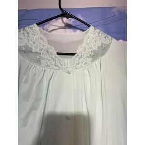 Vintage Shadowline Women's M Nylon Peignoir Robe Aqua Green Lace Pink Rosebud