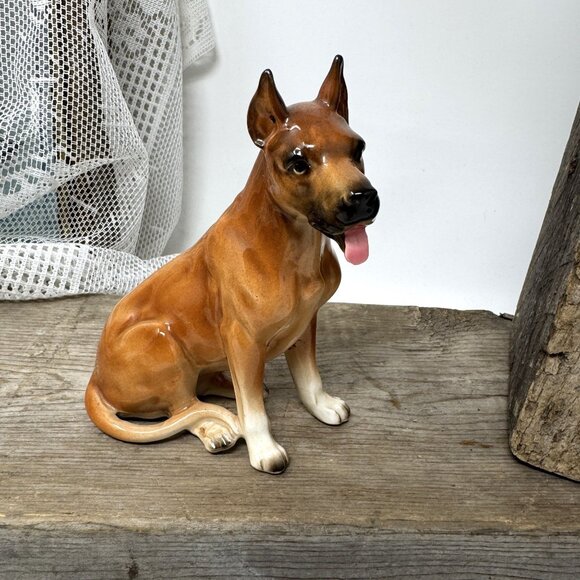 Vintage Shafford Hand-Painted Ceramic Great Dane Dog Figurine signed 9092