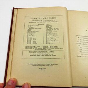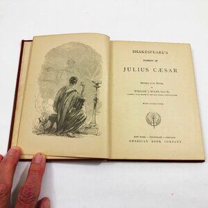 This is a vintage 1900 edition of William Shakespeare's "Julius Caesar" The book is accented with beautiful engravings. Definitely a book for the lover of antique books and or Shakespeare. The pencil marks add a special feel of someone using this book over one hundred years old. The book is currently stored in a poly bag in a room with AC and heat.