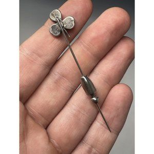 Vintage Shamrock Sterling Stick Pin Crushed Turquoise Mosaic Irish Clover Lapel