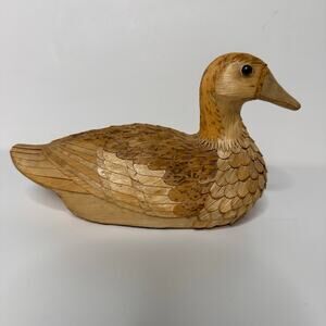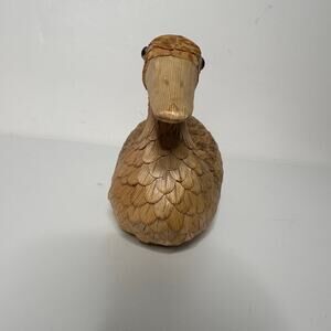 Handmade Vintage Wooden Corn Husk Duck Figurine