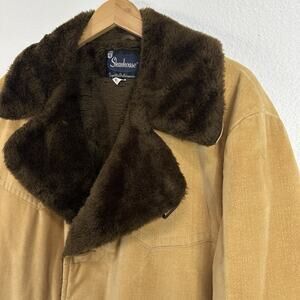 Vintage Shanhouse Outerwear Mens 46L Corduroy Barn Coat Field Jacket Faux Fur