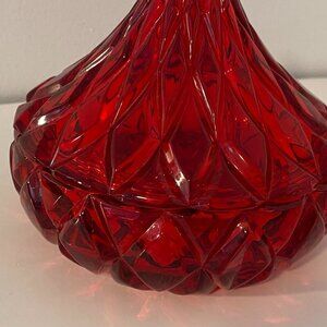 Vintage Shannon Designs of Ireland Lead Crystal Red Glass Candy Dish With Lid
