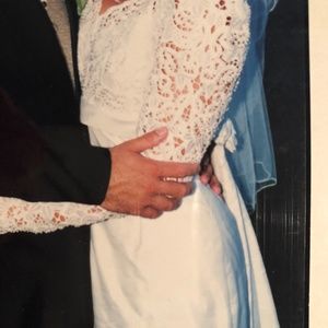 Vintage Shantung Silk w/Beaded Lace Wedding Dress S