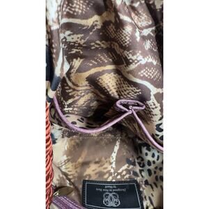 This Vintage Sharif bag measures 15 inches in width, 13 inches in height, and 11 inches in depth, making it a large and versatile choice for travel or casual wear. The adjustable strap drop is 19 inches, and the bag includes additional features such as a zipper closure, brass hardware, and stitching accents. This limited edition bag is a must-have for any collector or fashion enthusiast.