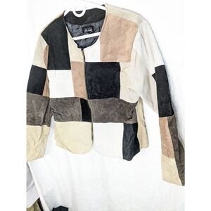 Vintage Sharon Arnold Patchwork Leather Cropped Jacket XL 70s Prop Mod