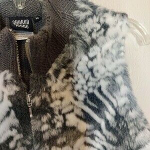 Sharon Young Faux Fur front Zip Up Vest in Size Medium. Gray ribbed knit sweater back. Super soft and cozy. Excellent preowned condition.