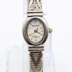 Vintage Sharp Watch Womens Silver Tone Stainless Steel White Classic Dial