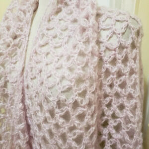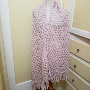 Vintage Shawl Light Pink/Mauve Crocheted Knit Wrap