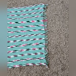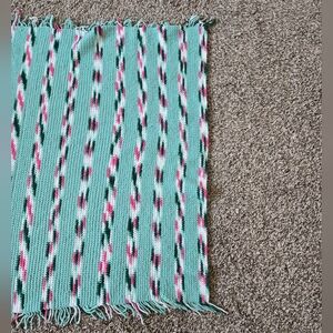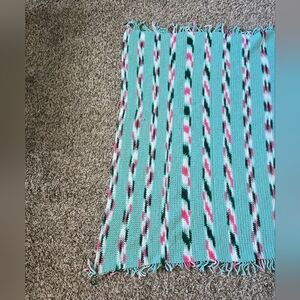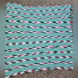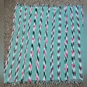 Vintage Shawl Wrap, Leg Warmer Crochet By Hand 1988 With Fringe Greens & Pink