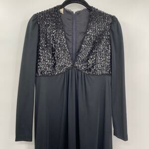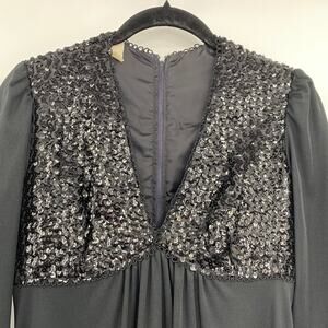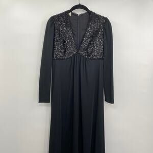 Vintage Shawn Jos 1970s Formal Gown Maxi Dress Black Sequin V Neck Womens Small