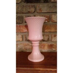 Vintage Shawnee Pedestal Vase, Pink Ribbed Swirl, Shawnee Pottery 416