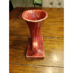 Vintage Shawnee Planter USA Pottery Cornucopia Vase Dark Pinkish Red ~6.5" READ