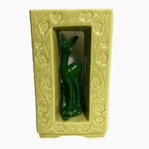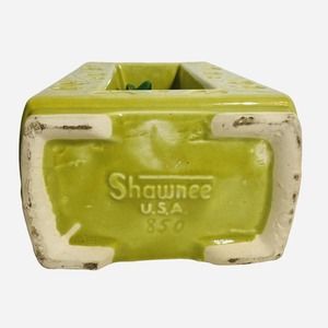 Vintage Shawnee Pottery Double Vase 850 Chartreuse Green Deer Ivy Mid Century