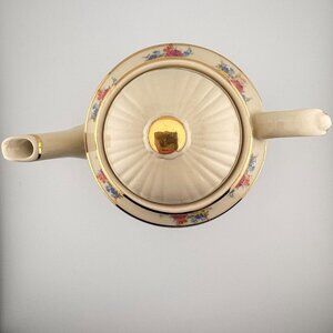 Vintage Shawnee Pottery Teapot USA | Hand Painted Blue Gold Floral