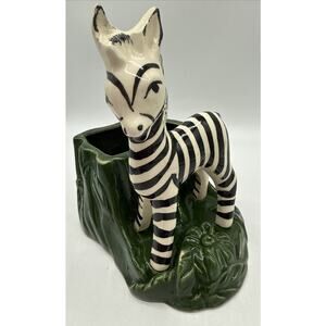 Vintage Shawnee Pottery Zebra Standing By Green Stump Planter 7”