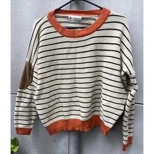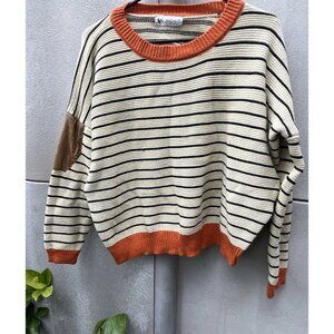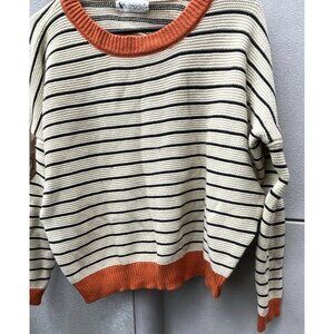 Vintage She Inside Women’s Sz Large Brown And Orange Cardigan Striped Sweater