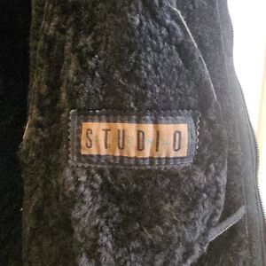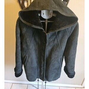 Vintage Shearling Jacket Sheepskin Suede Coat Siena Studio Womens L XL Black
