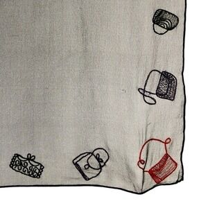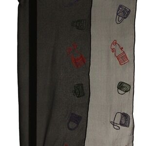 * Features: Vintage Sheer Black Scarf with embroidered purse handbags in red, blue, and green. The embroidery is finished so both sides look good.