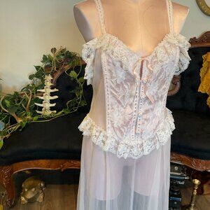 Vintage Sheer Bustier Dress Gown lingerie coquette Ruffle night gown medium