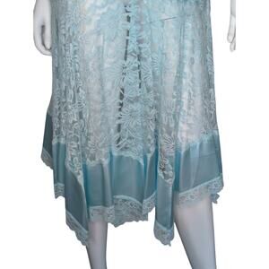 Vintage Sheer Lace Satin Dress 10 Asymmetric Hem Drop Waist Bow Flapper Gatsby