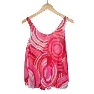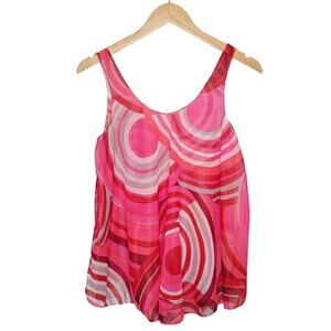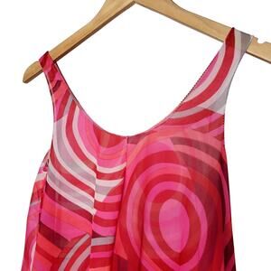 Vintage Sheer Psychedelic Swing Slip Tank Pink Red Circle