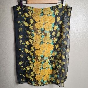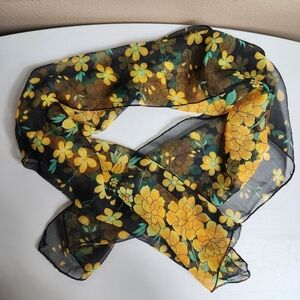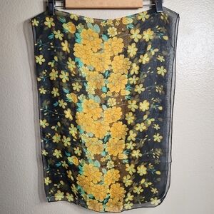 Vintage Sheer Rectangle Black, Orange Marigold Scarf-17"Wx58"L