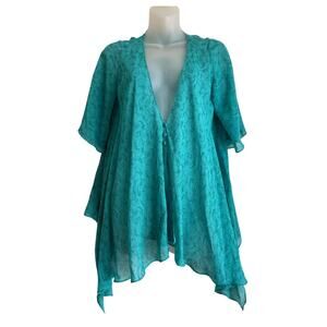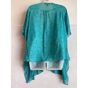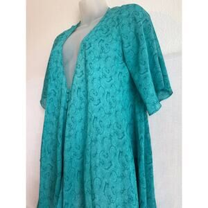 Vintage Sheer Silk Top Size S Teal Paisley Flutter Sleeve Fairy Flowy Ballerina