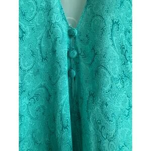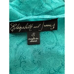 Vintage Elizabeth and James Sheer 100% Silk Blouse Size S Teal Paisley 3-Button Flutter Sleeve Blouse