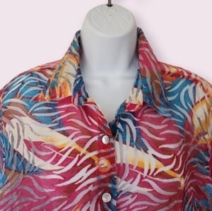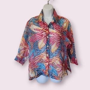 Vintage Sheer Tropical Hawaiian Button Down Shirt Size L