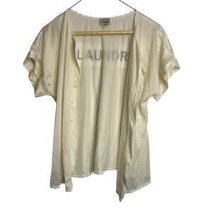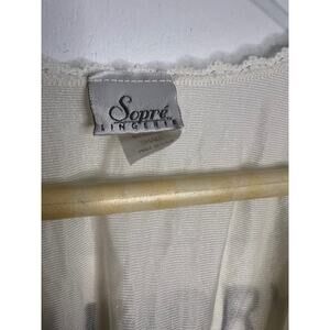 This vintage sheer two-piece lingerie/sleep set in size small is a charming addition to any woman's collection. Made from delicate lace material, this original set features a classic white color that exudes elegance and sophistication. Perfect for lounging around the house or adding a touch of romance to bedtime, this set is sure to become a staple in your sleepwear wardrobe.