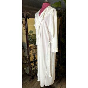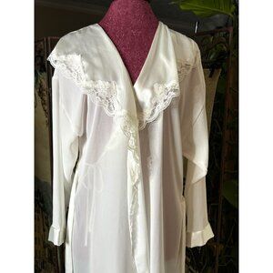 Vintage Sheer White Lace Trimmed Robe With Belt