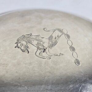 Vintage Sheffield EPC Silverplate Silent Butler Hinged Lid Footed Engraved Horse