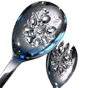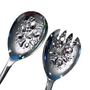 Piece: Serving Fork and Spoon, Fruit Embossed
