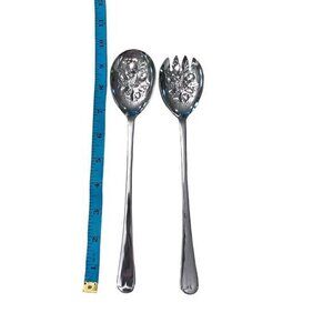 Vintage Sheffield England Embossed Silver Plate Salad Serving Fork & Spoon 9.5"