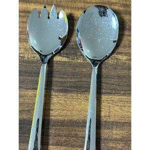 Vintage Silvercraft Sheffield England 2-Piece Salad Set Porcelain Floral Handles