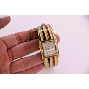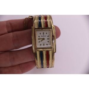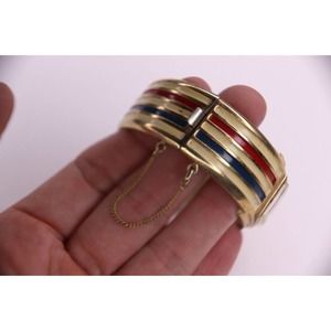 Vintage Sheffield Watch Bangle Cuff Red White Blue Stripes