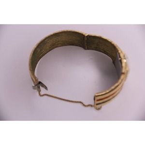 Vintage Sheffield Watch Bangle Cuff Red White Blue Stripes Safety Chain