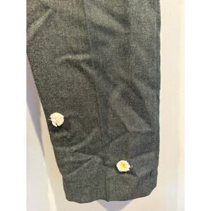 Playfully chic with a vintage twist, these Shefford by Anderson~Little trousers feature whimsical white and yellow daisy floral appliqués scattered throughout. Crafted in a structured gray fabric with a tailored, straight-leg silhouette, they blend classic suiting style with handmade charm. A standout piece perfect for collectors, stylists, or anyone who loves unique, one-of-a-kind vintage finds.
