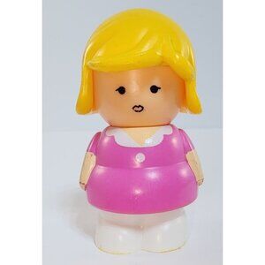 Vintage Shelcore Little People Chunky Blonde Girl Pink Dress 2.5 Inches Plastic