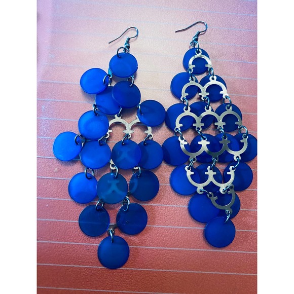 Vintage Shell Chandelier Statement Earrings Royal Blue 5 Inch Dangle Drop