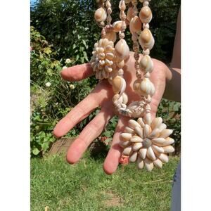 Three strands of oversized seashell beads strung into dramatic blooms. Perfect for nailing the Coastal Cowboy vibe with boots and a gauzy dress, but just as relevant in Mermaidcore trend — layered over slips or denim with piles of turquoise and silver.