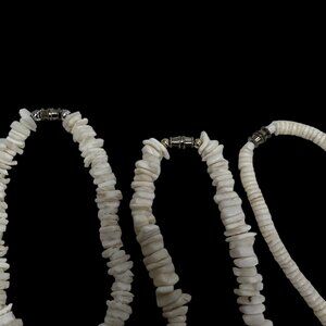 Vintage Shell Necklaces Lot of Three White Chips Barrel Clasps