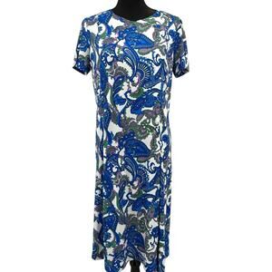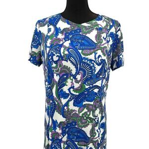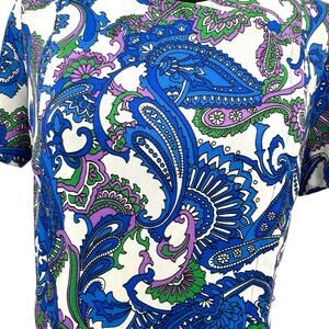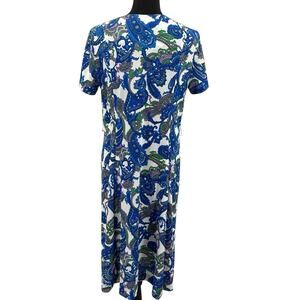 Vintage Shelton Stroller 60s White Dress Blue Paisley Print Flower Front Zip