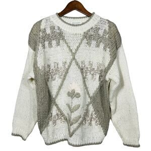 Vintage Shenanigans Handknit Sweater Floral Long Sleeve - L