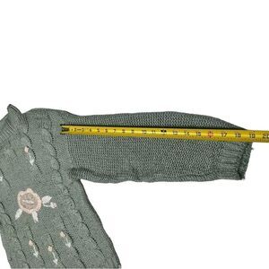 Vintage Shenanigans Knitted by Hand Made Blue Green Knitted Sweater Pink Embroidered Flowers